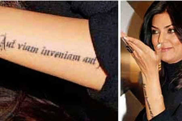 A woman of substance, Sushmita Sen is a name one reckons for an inspiring persona’. This former miss universe has 4 philosophically inked tattoos of which one is Bollywood actress and former Miss Universe, Sushmita Sen’s life is a lesson in inspiration. Her four known tattoos are a symbol of her trailblazing philosophy, one of them being ‘Aut viam inveniam aut faciam‘; meaning ‘I’ll either find a way or make one’.