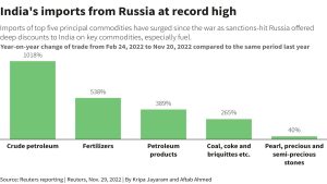Prime Minister Narendra Modi’s government has not joined Western countries in openly criticizing Moscow for the war in Ukraine, and has sharply increased purchases of Russian oil that have cushioned it from some of the impacts of sanctions.